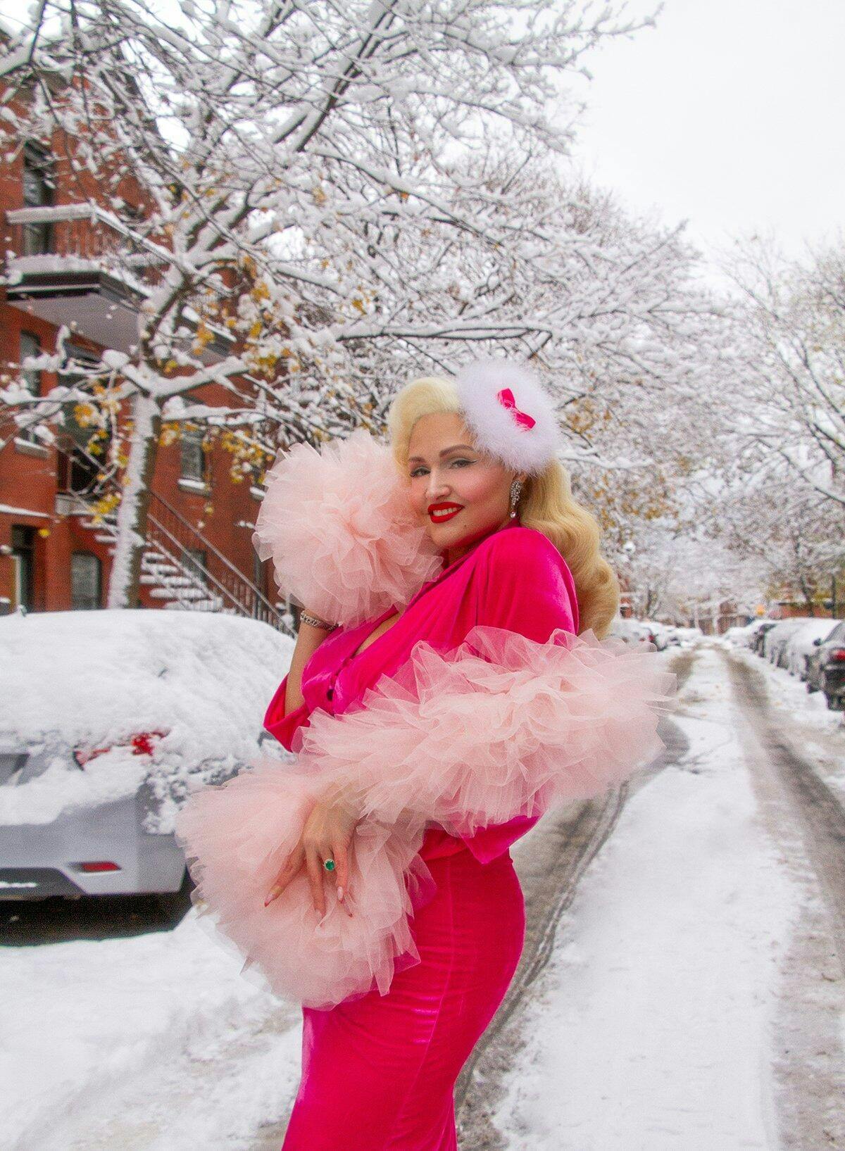 Love the hidden sleeves which makes it SO convenient went you want to walk around in your lush boa without dropping it, haha! Gorgeous soft pink color, the tulle is not itchy, very lush item to elevate any glamorous look.