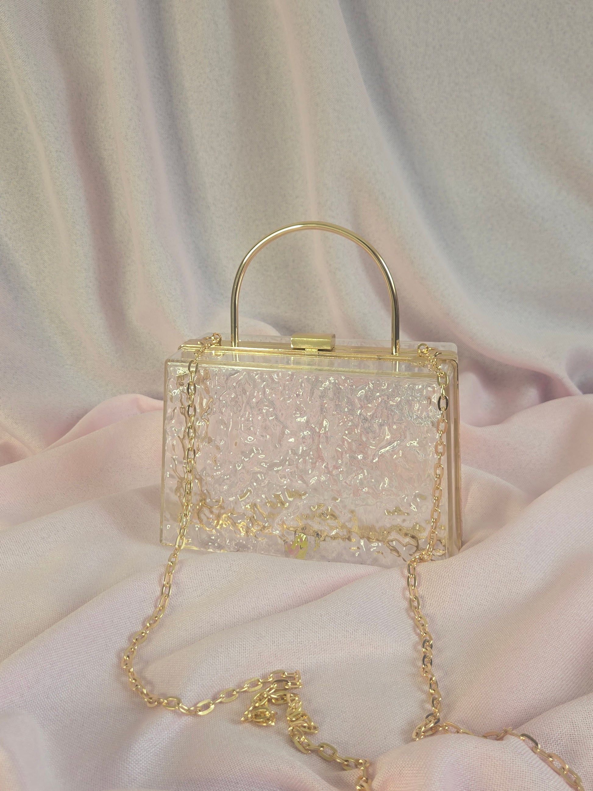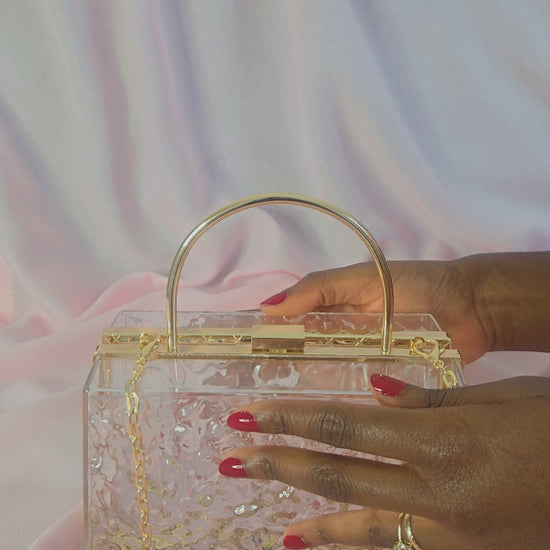 PRÉCOMMANDE - Transportez-vous dans l'âge d'or d'Hollywood avec notre sac Lucite Rita inspiré des années 50. Ce sac glamour, compact avec une anse métallique et des bords dorés, est le compagnon idéal pour vos tenues vintages les plus élégantes. Les deux côtés en relief ajoutent une touche de sophistication à ce sac unique tout en permettant de "floutter" ce qu'il contient. Fabriqué avec soin et attention aux détails, le sac Rita est un vrai petit bijou pour toute fashionista passionnée par le style rétro.
